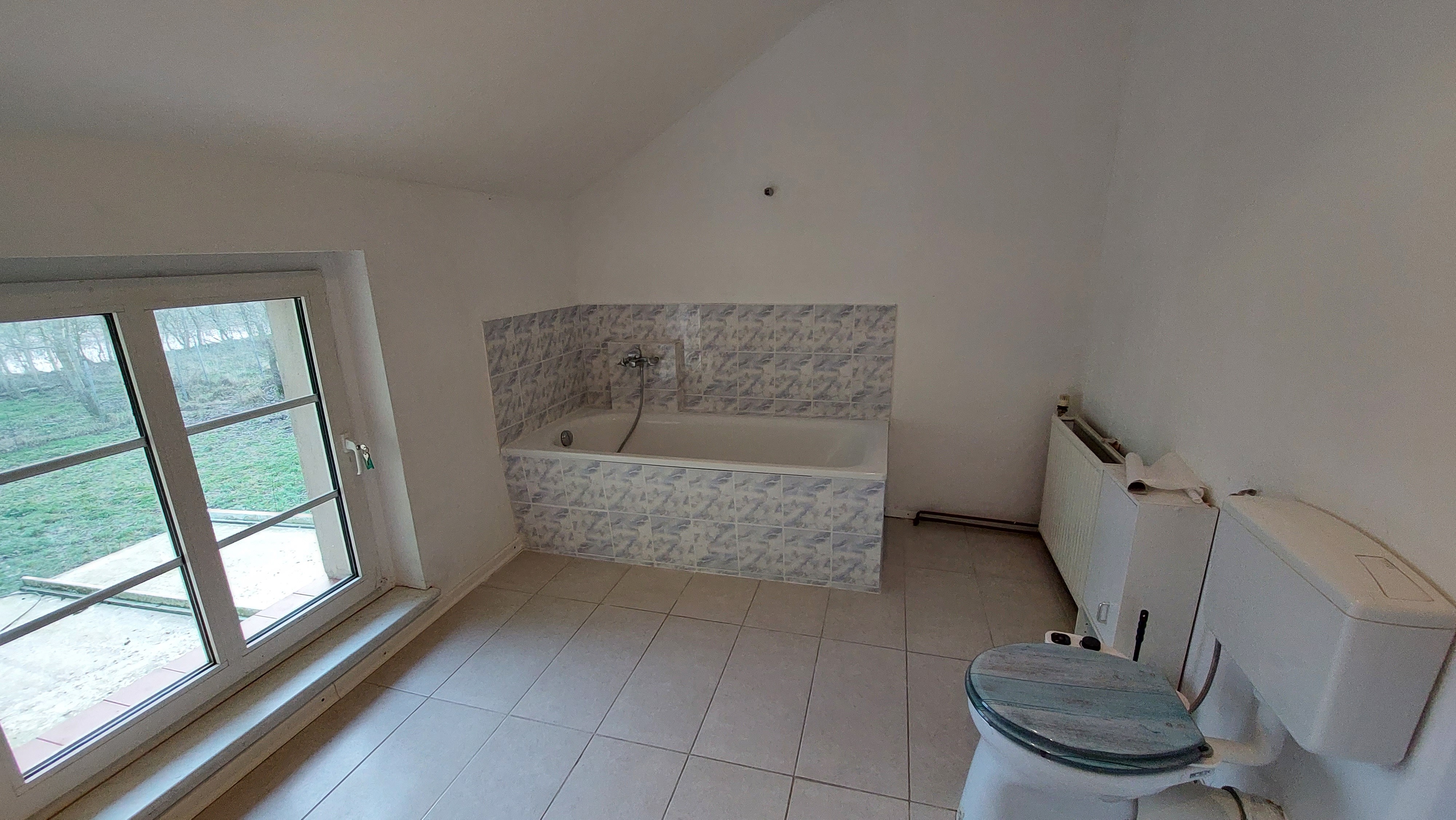 Weiterhin befinden sich im Erdgeschoss ein Schlafzimmer, ein Abstellraum, ein kleiner Keller sowie ein Duschbad mit Fenster. Ein nach Süden gelegener Wintergarten lädt zum Verweilen ein. Ein weiteres Duschbad wurde sehr praktisch in der Nähe des Stalles installiert.