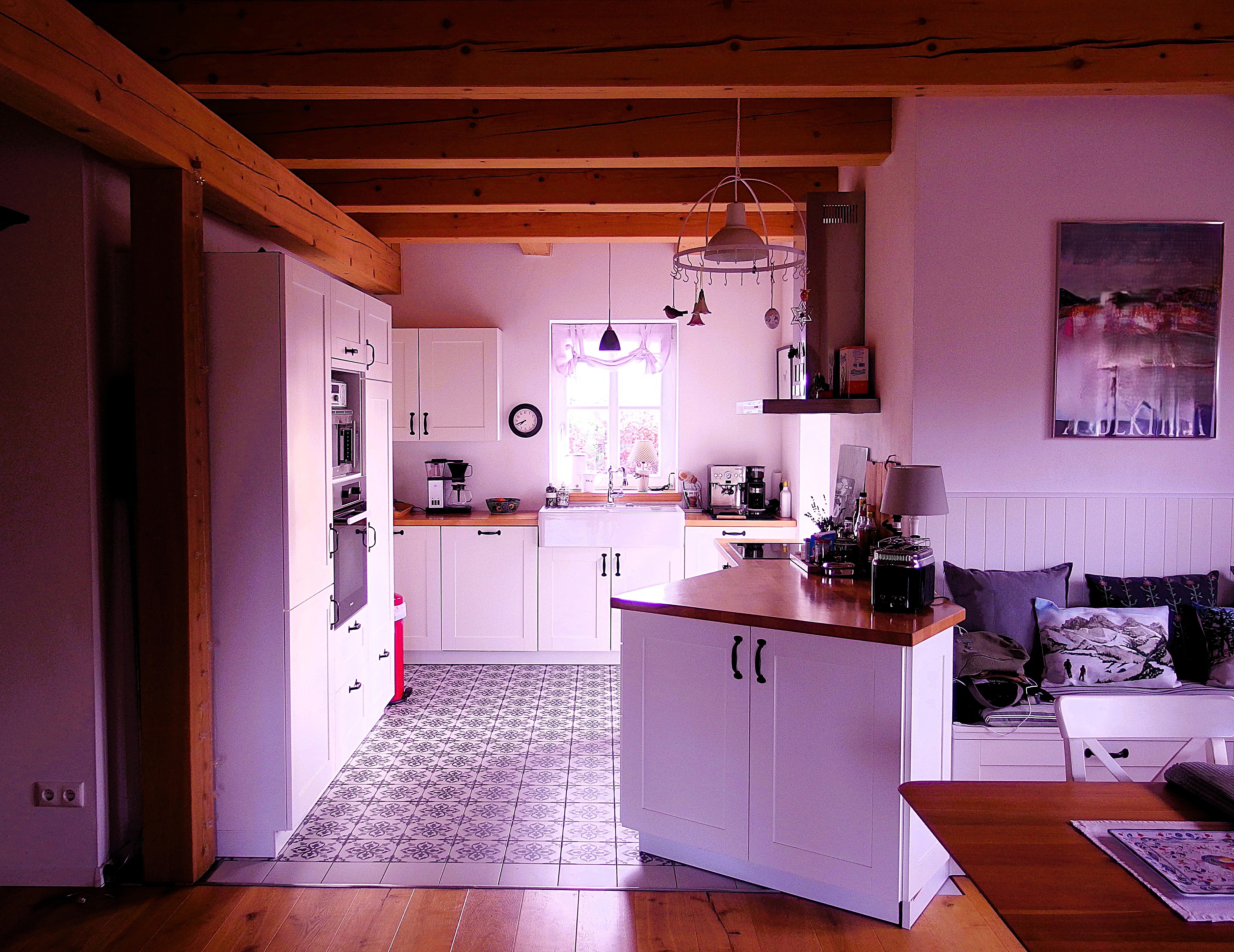 Es ist alles sehr offen gestaltet so das zwischen Küche und Wohnzimmer keine Türen vorhanden sind.