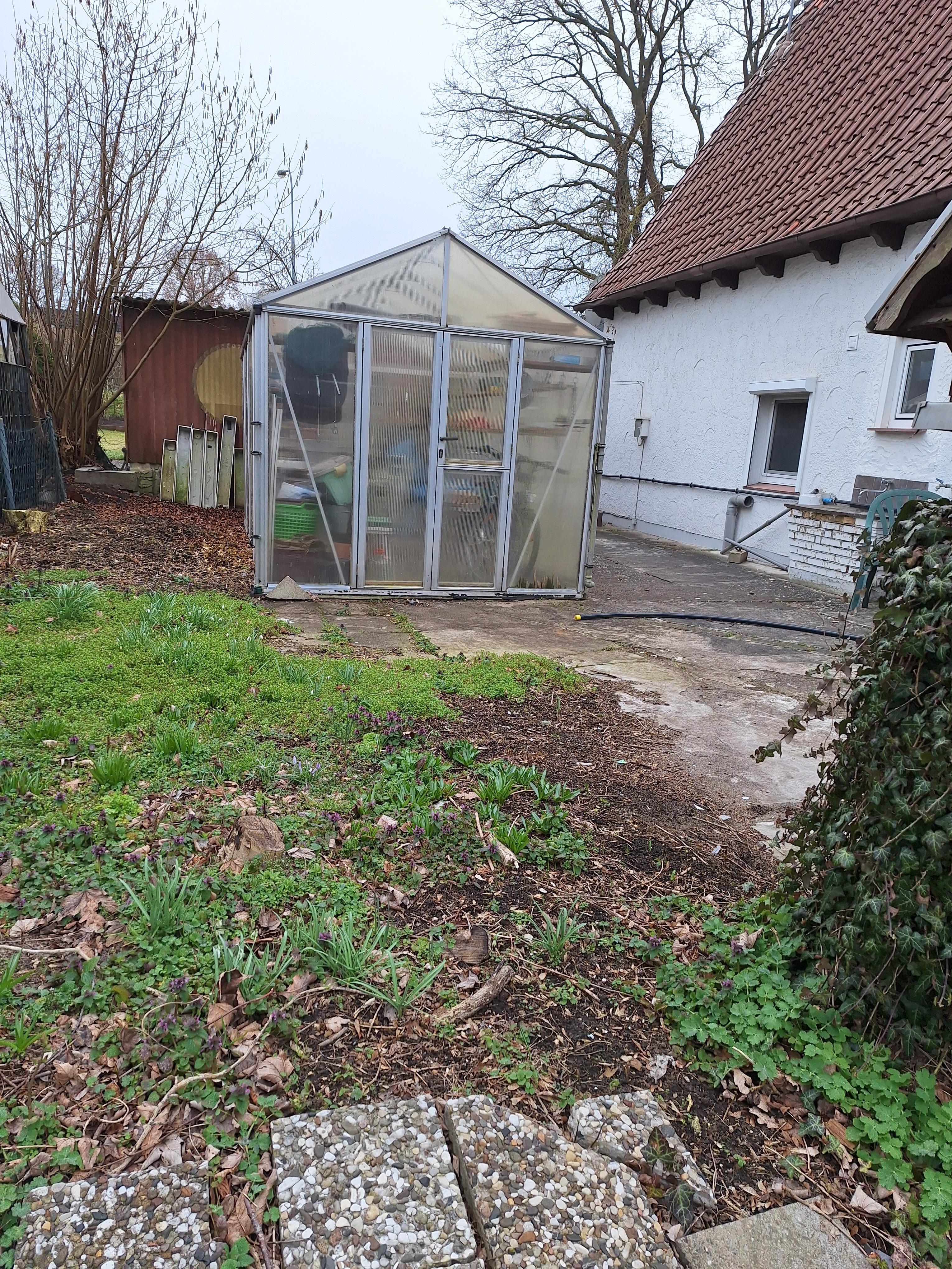 Eine Garage, 3 PKW Außenstellplätze und ein Gewächshaus runden das Angebot ab.