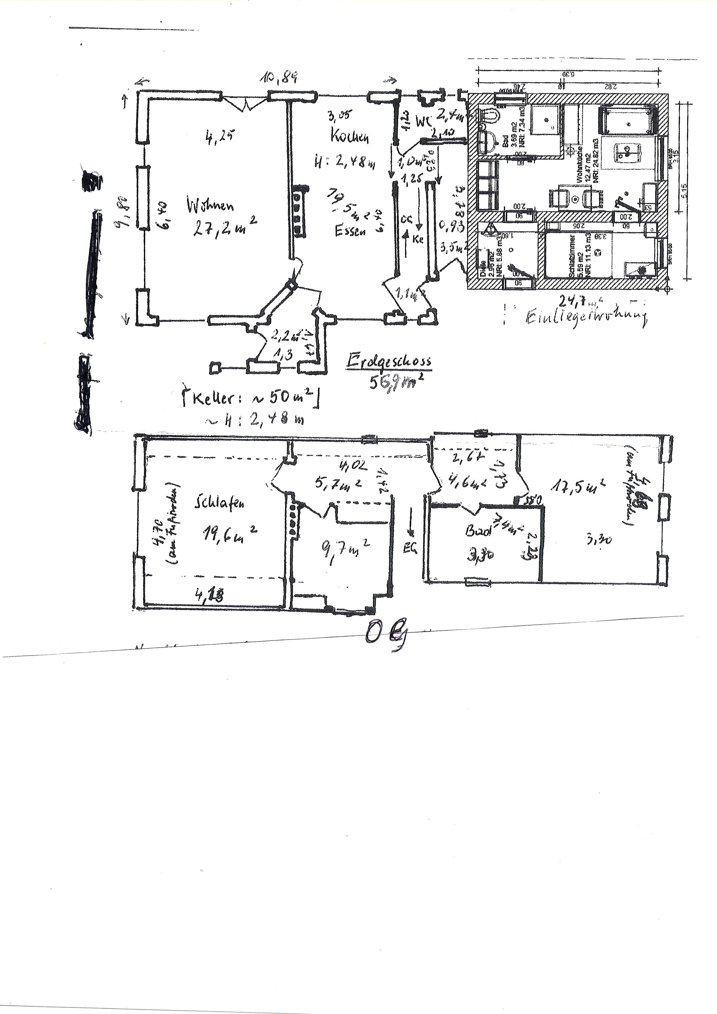 Besonderheiten sind nicht nur die 4 Ein. bzw Ausgängen sondern auch die hohen Kellerdecken in der