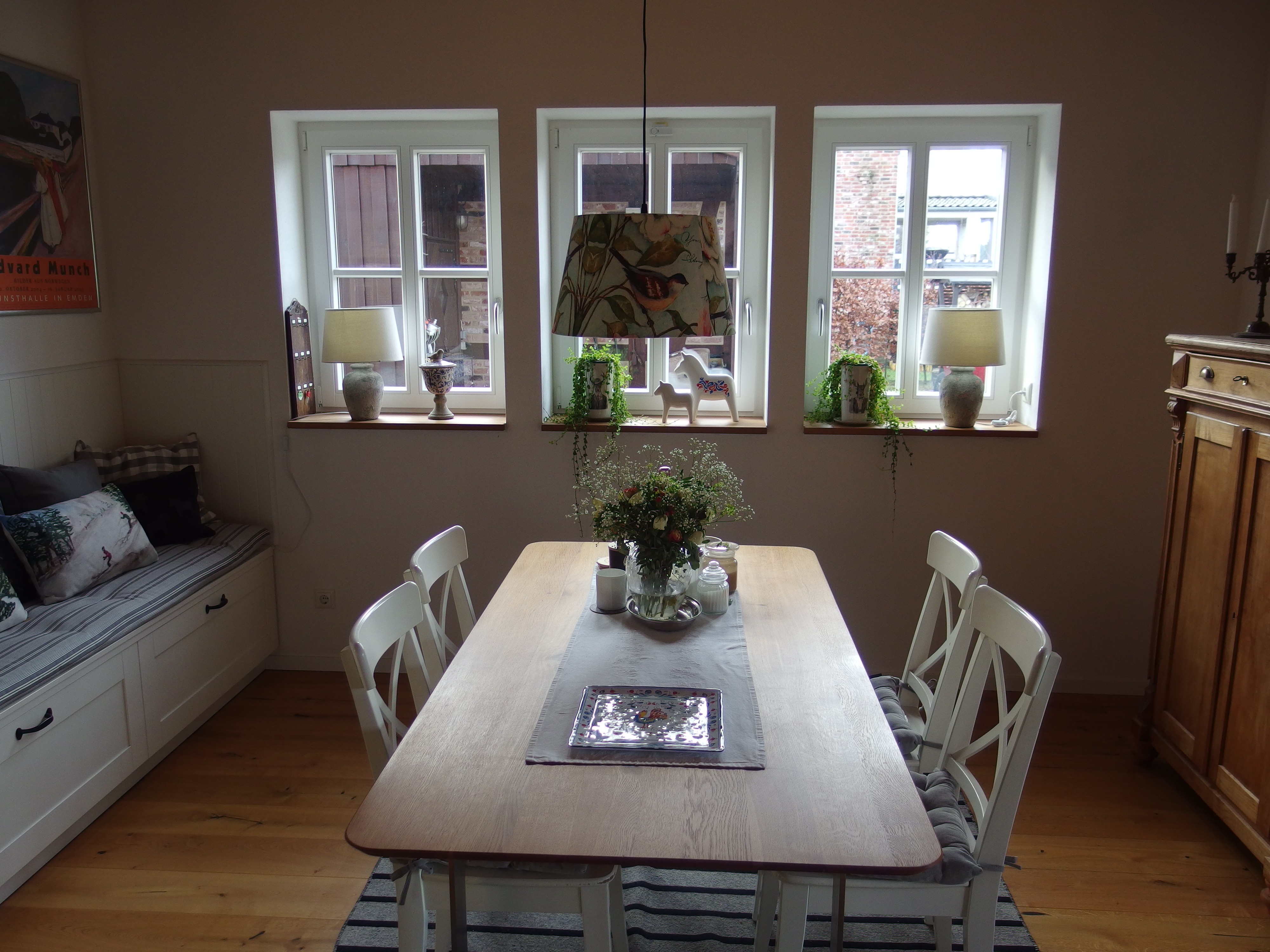 Durch die fast bodentiefen Fenster ist eine angenehme Wohlfühl - Atmosphäre vorhanden.